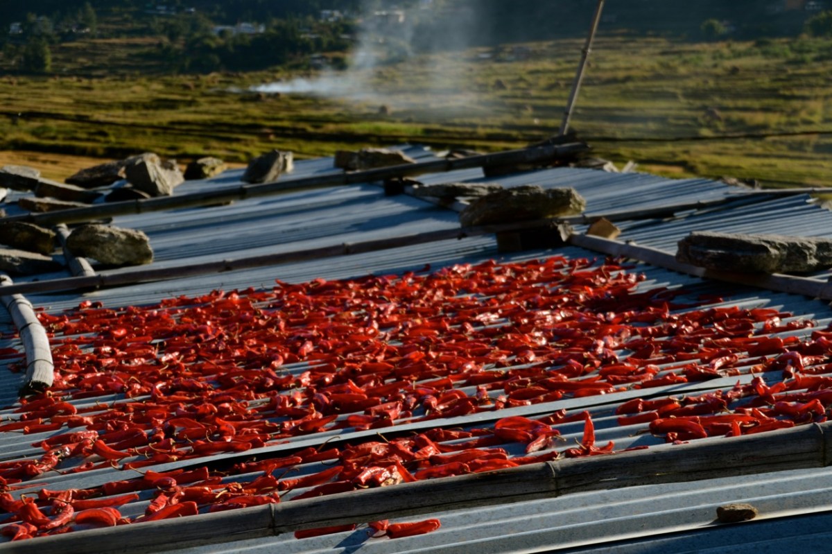 Chilis drying on a rooftop